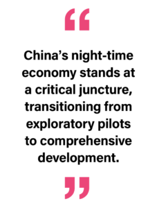 China’s night-time economy stands at a critical juncture, transitioning from exploratory pilots to comprehensive development. There is enormous, untapped potential alongside significant institutional, infrastructural and market challenges. Local policy systems have achieved substantial scale, though regional imbalances persist. Local innovations—particularly Shanghai’s night mayor system and outdoor seating regulations—have accumulated valuable experience for national promotion.
